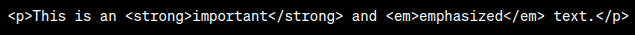 HTML allows you to format your text in a variety of ways. Text can be made bold by using the <strong> or <b> tag, and italic by using the <em> or <i> tag. You may also strike through text with the <s> tag and underline it with the <u> tag.